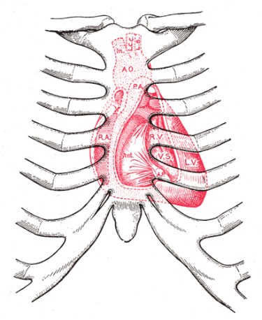 CV15 is located below the xiphoid process, 7 cun above the umbilicus. This point is located in the supine position with the arms uplifted. This acupuncture point is commonly used in acupuncture clinics along as is its adjacent point CV14, the front Mu point of the Heart. The lower aspect of the heart may be located in this region if there is cardiomegaly. As a result, this point and neighboring acupuncture points including ST19, KI21 and CV14 are contraindicated for deep needling in order to avoid puncturing the heart. Deep insertion is also contraindicated because the liver may be located in this region if there is hepatomegaly.